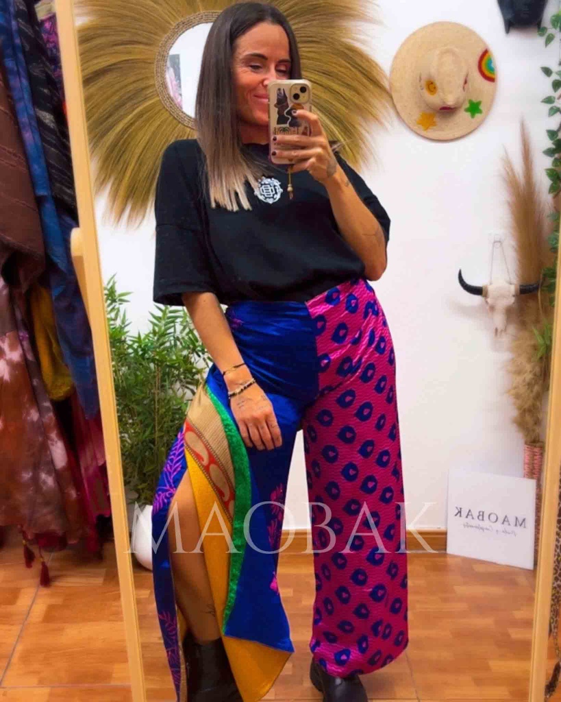 El Pantalón Mae Persia es una joya boho con esencia viajera. De forma tailandesa y corte amplio, está diseñado para aportar comodidad absoluta y movimiento, convirtiéndose en una de esas prendas que no te quieres quitar nunca.
