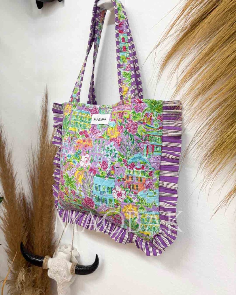 El Tote Baby Yangri es la versión mini del clásico tote, elaborado en algodón y con un diseño práctico para llevar lo esencial. Su detalle de volantes le da ese toque especial, femenino y divertido que lo convierte en un bolso único.