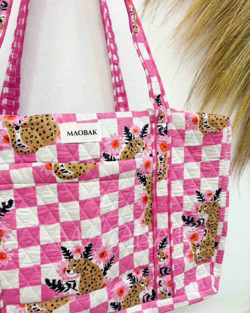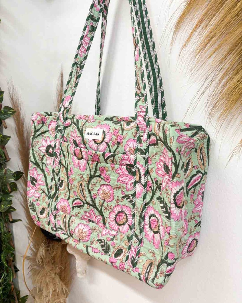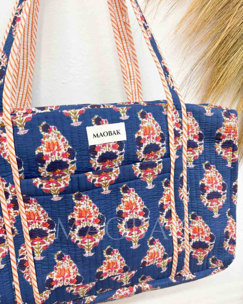 Bolso elaborado en algodón bordado y estampado. Tiene cremalleras tanto en los bolsillos como en la apertura principal. Gran capacidad, perfecto para ir de viaje o para el día a día. Sus estampados no van a dejarte indiferente además las asas también las puedes cruzar.
