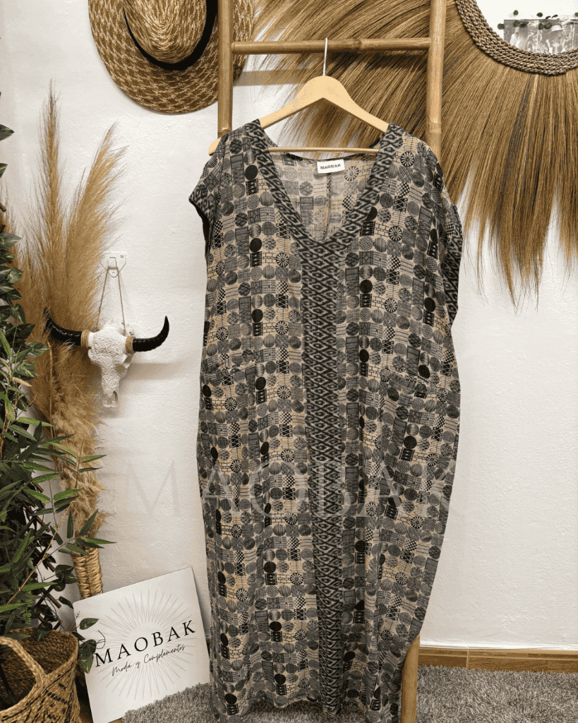 Inspirado en los tonos cálidos de la tierra, nuestro Caftán Etnik Sahara es una prenda ligera, cómoda y llena de carácter. Confeccionado en suave tejido estampado, combina un diseño étnico con detalles en contraste que le aportan un toque único.