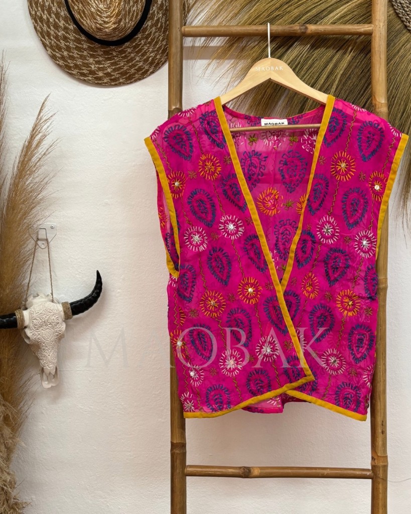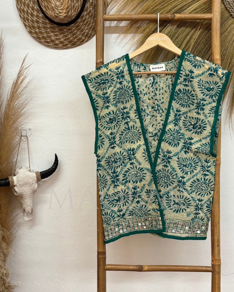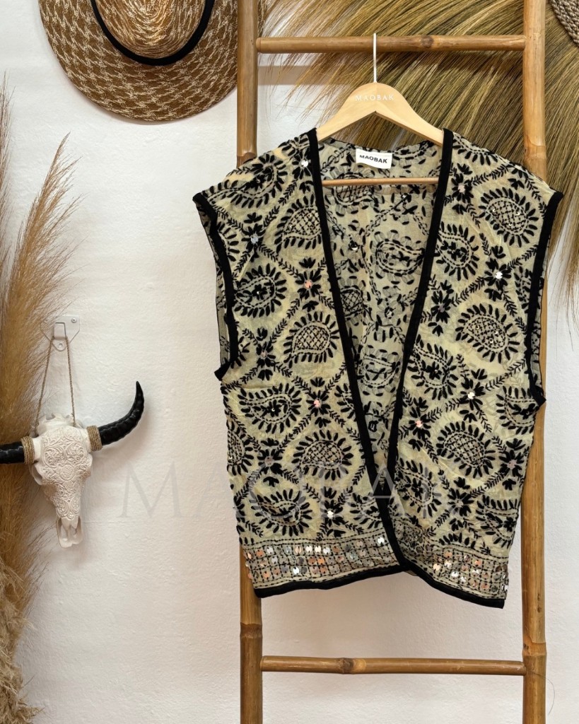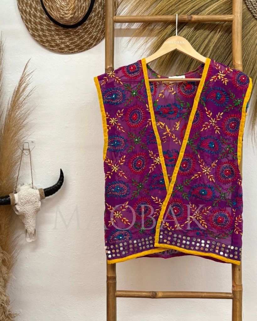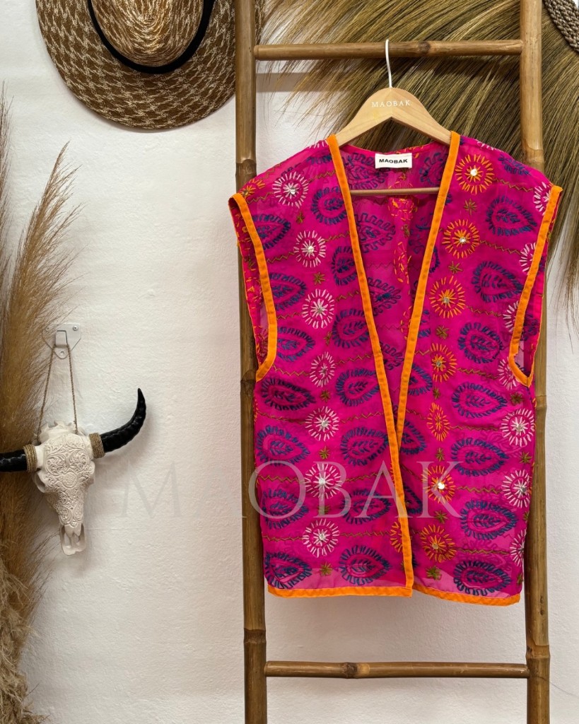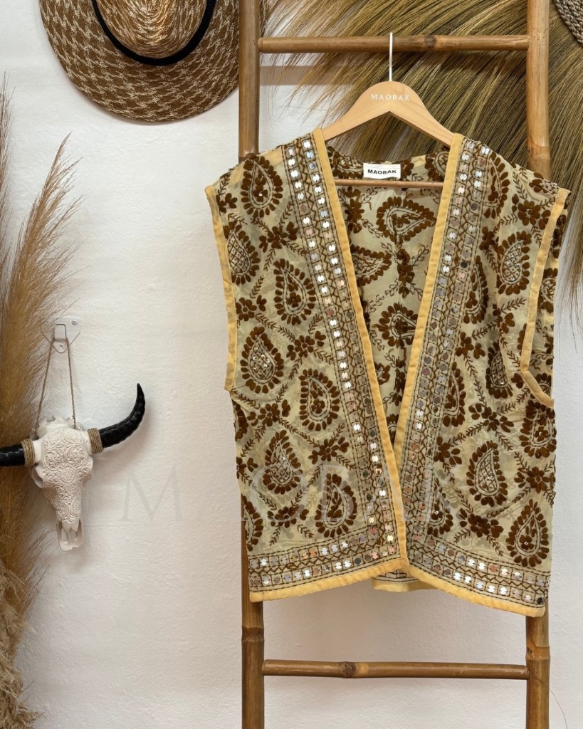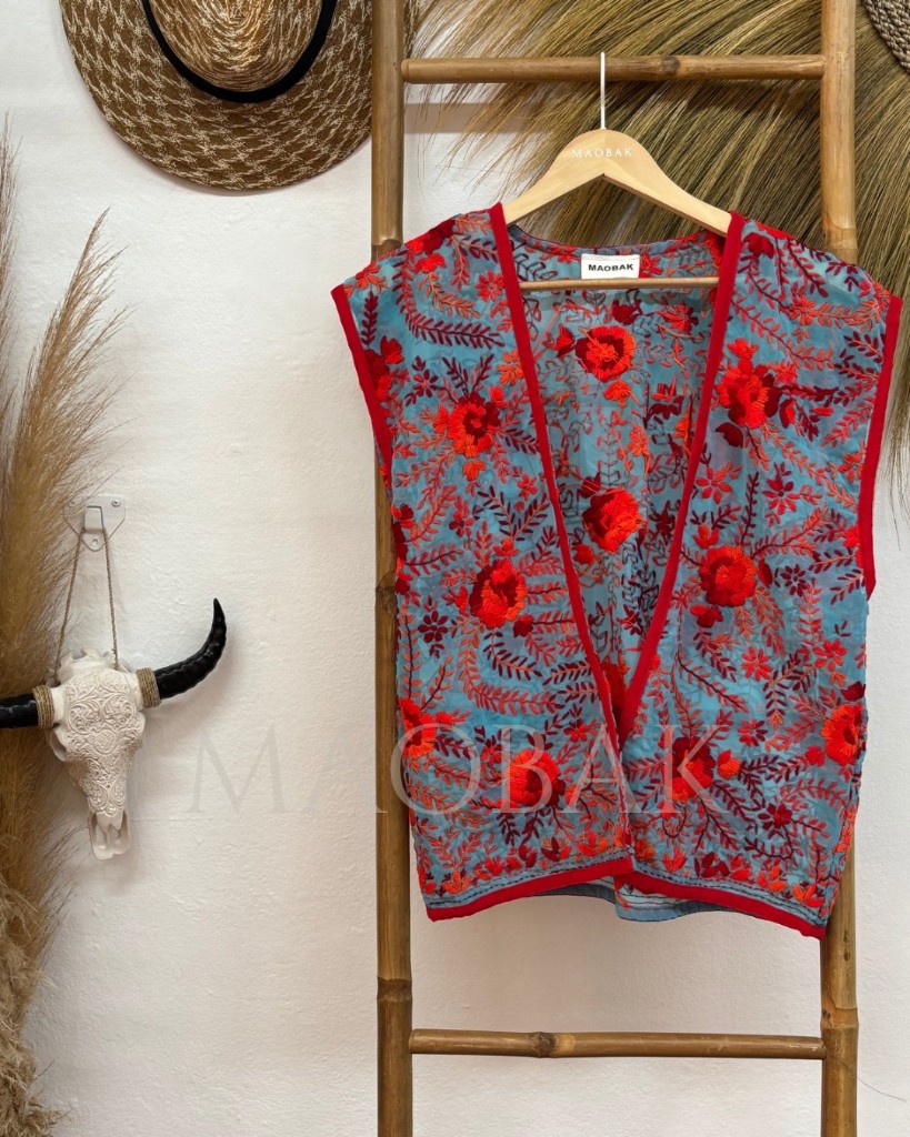 Color, alegría y mucha personalidad. Nuestros Chalecos Capri estan elaborados de manera artesanal, en India, con bordados llenos de detalles y tonos vibrantes que lo hacen único.