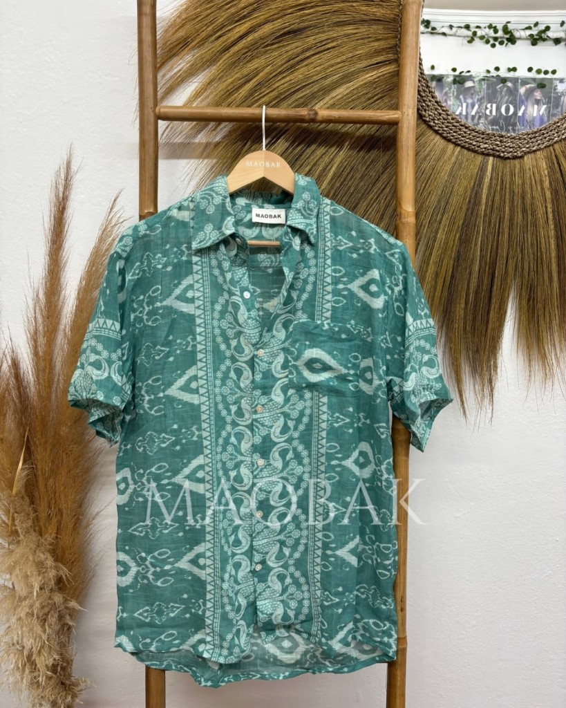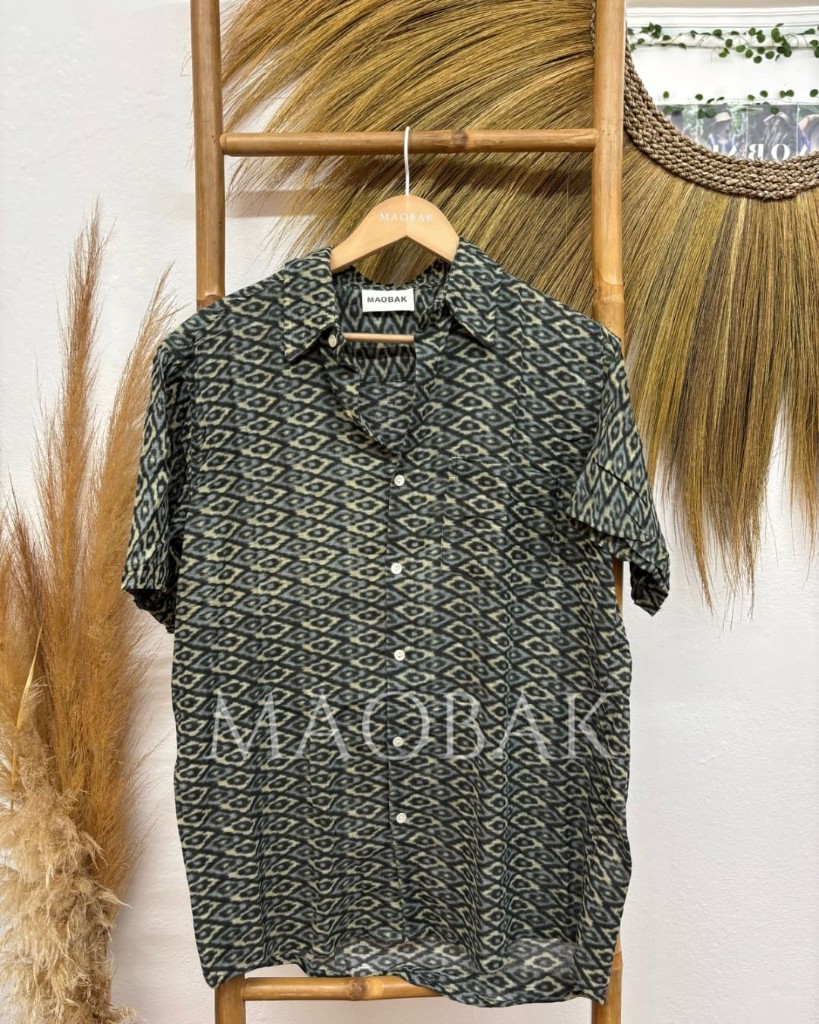 Una prenda versátil y llena de carácter. Confeccionada en tejido ligero y transpirable, su estampado étnico evoca la fuerza y la calidez del desierto.