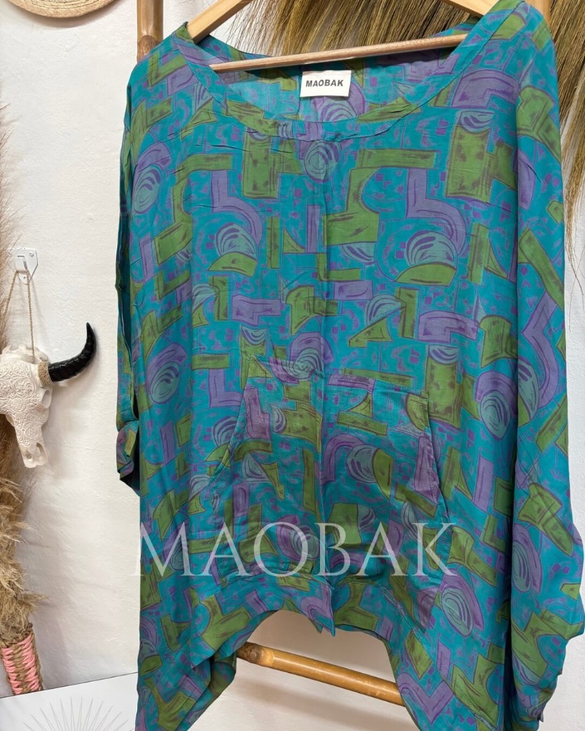 Su diseño amplio y versátil permite usarlo de distintas formas: como blusa suelta, sobre bikinis, o combinado con pantalones o faldas para un toque bohemio y sofisticado.