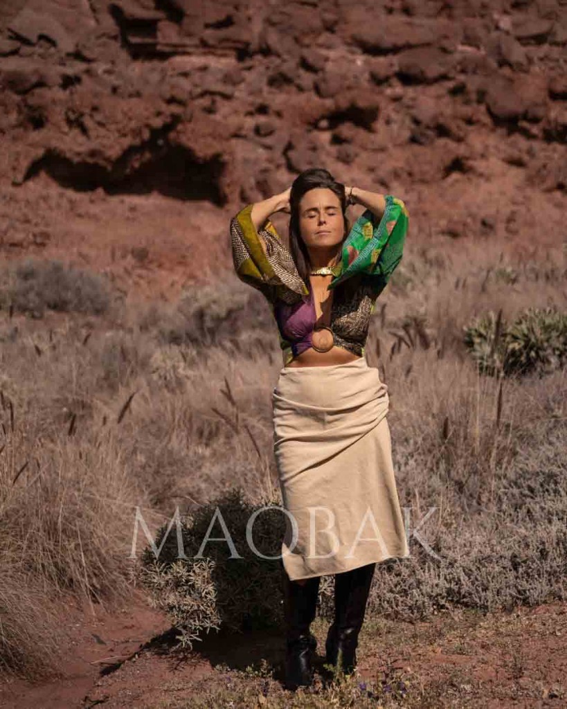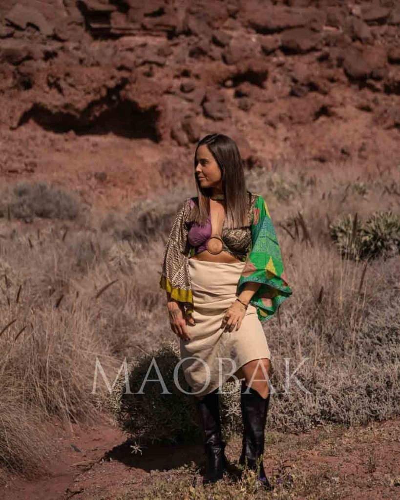 La Blusa Bell Patchwork Persia está elaborada en India a partir de tejidos sari reciclados, combinando retales llenos de color, textura y tradición. Cada pieza es un pequeño tesoro, confeccionado artesanalmente con ese encanto imperfecto que la hace tan especial.
