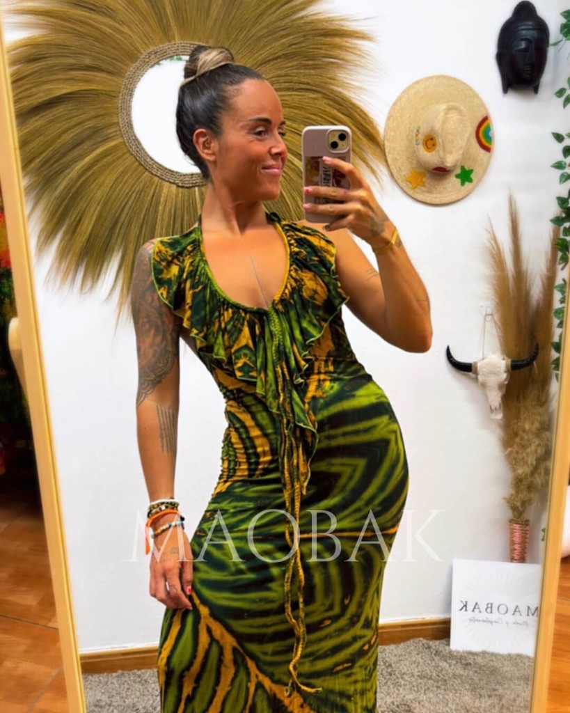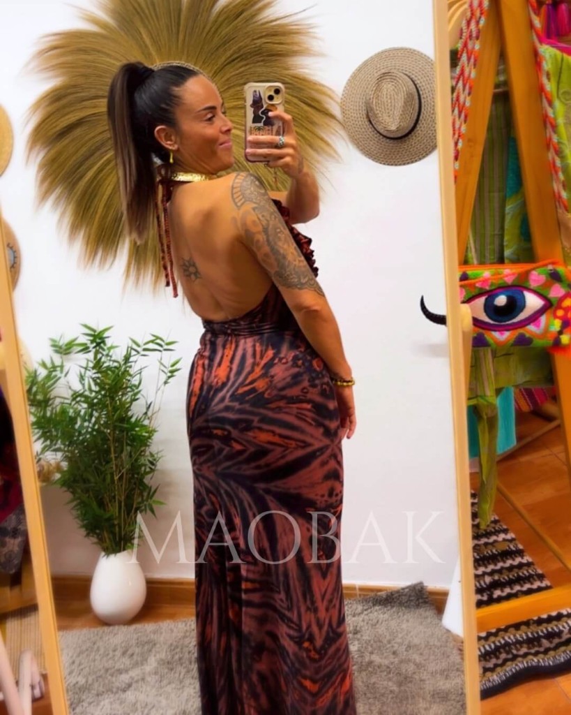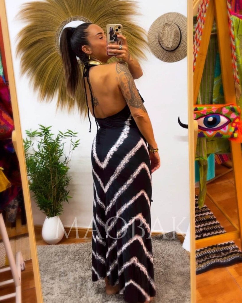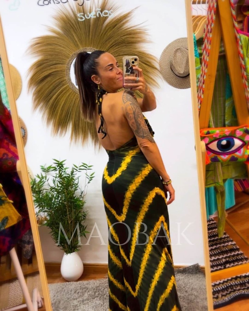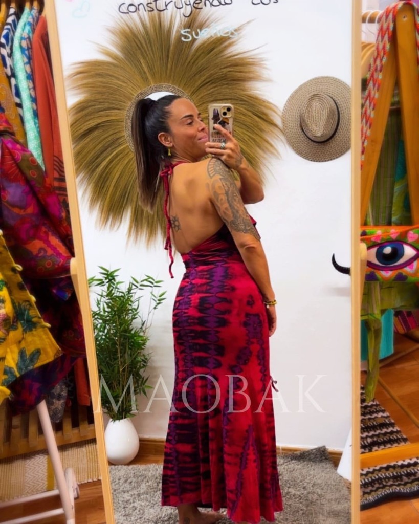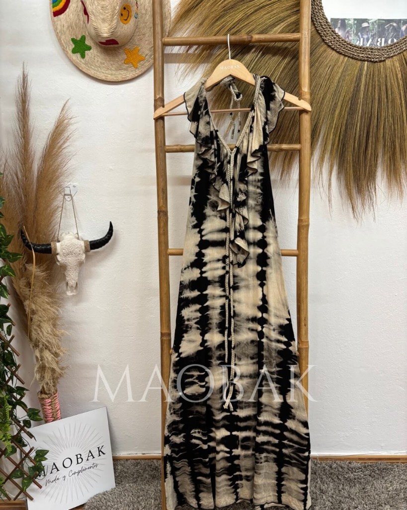 Vestidos elaborados con porcentaje en elastano, teñido a mano a través de la técnica del tie dye tradicional tailandés. Su volante en la parte central hace que disimule y puedas colocarlo sin nada debajo. Es multiposición ya que tiene dos cuerdas en la parte frontal y en la parte del cuello para poder colocarlas como mejor te sientas. Su espalda al aire te dejará sin palabras.