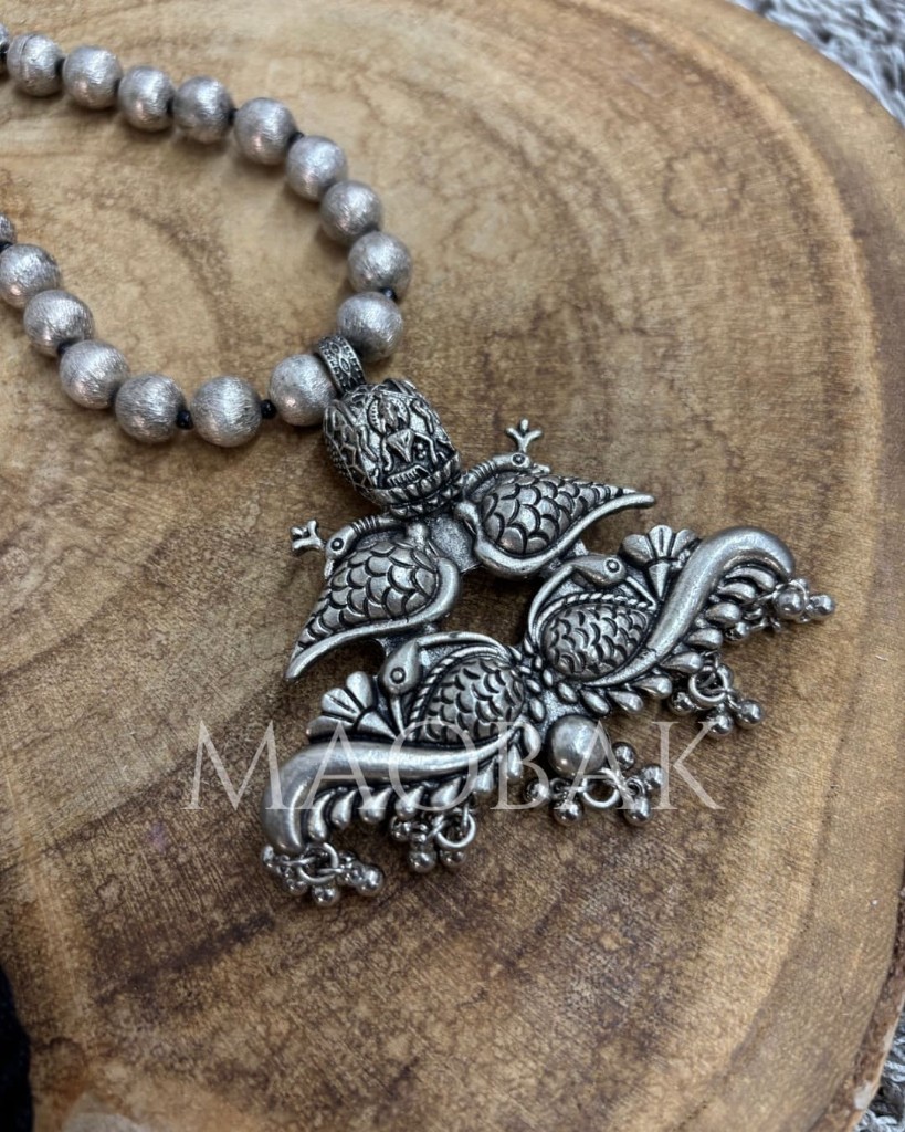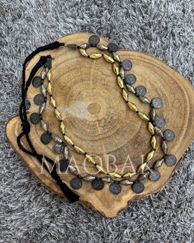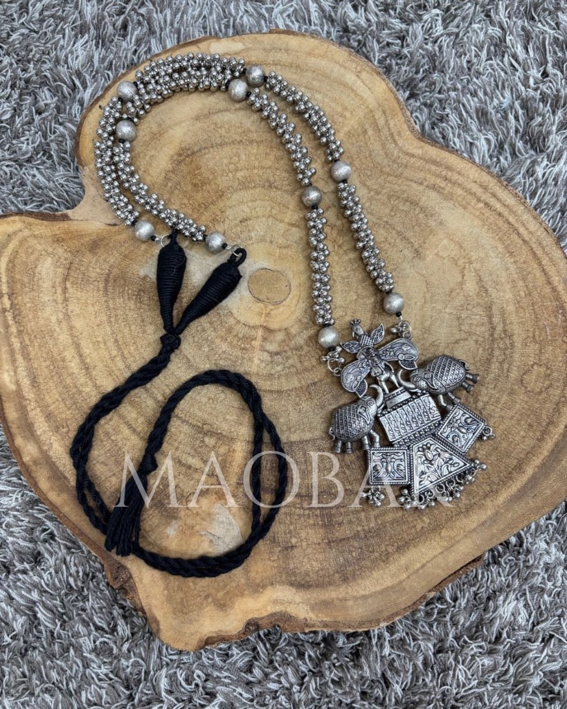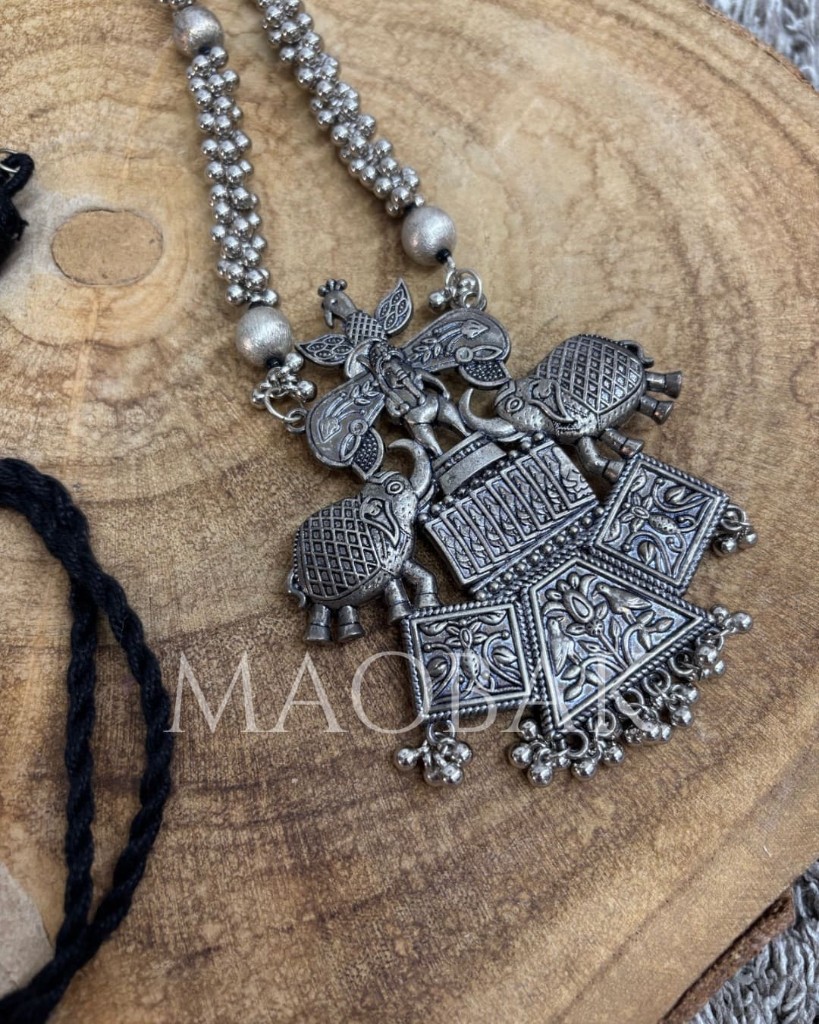 Su colgante central, con elefantes y motivos grabados, lo convierte en una pieza llamativa que eleva cualquier look. Ideal para combinar con prendas lisas y dejar que sea el protagonista.