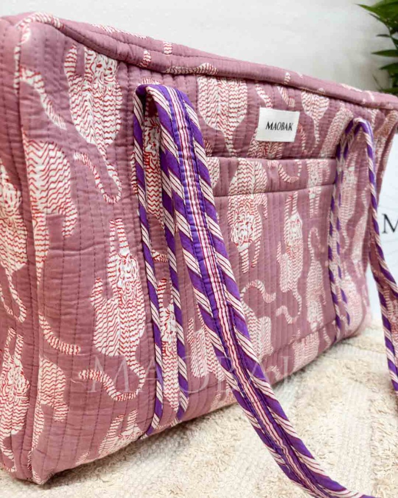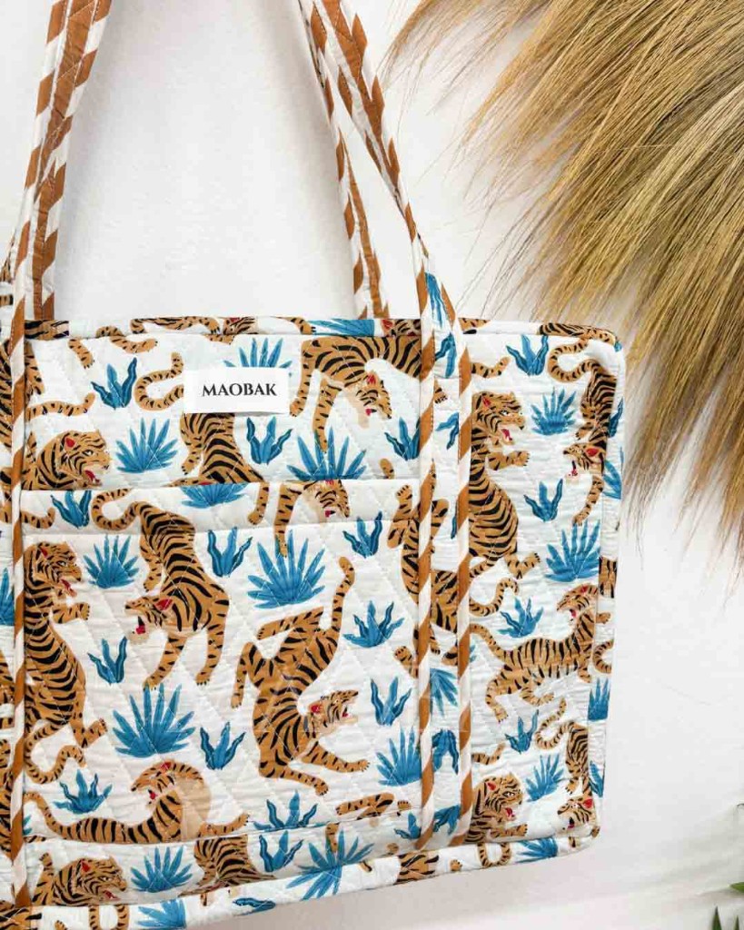 Bolso elaborado en algodón bordado y estampado. Tiene cremalleras tanto en los bolsillos como en la apertura principal. Gran capacidad, perfecto para ir de viaje o para el día a día. Sus estampados no van a dejarte indiferente además las asas también las puedes cruzar.