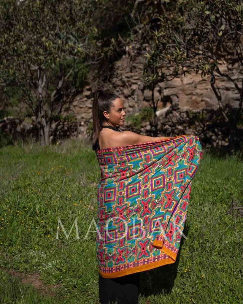 Pañuelo estampado elaborado en viscosa. Su caída y colores harán que aproveches esta prenda para TODO. Puedes crear vestido, top, blusa, pashmina, falda... Deja llevar tu imaginación y crea tus propios looks. Medidas aproximadas 1x2 metros.