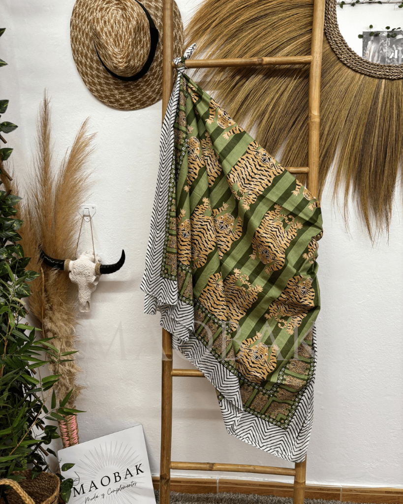 Su diseño generoso te permite llevarlo como pareo, foulard, turbante, vestido, top o incluso como toque decorativo en tu hogar.